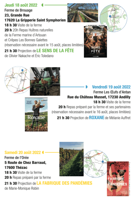 Nous serons également présents à la Ferme Les Oeufs d’Antan, à Andilly, le vendredi 19 août pour vous présenter le film Roxane, de Mélanie Auffret.